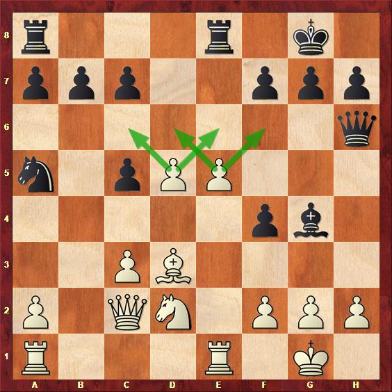 After 15…dxc5 16.e5 Qh6 17.d5