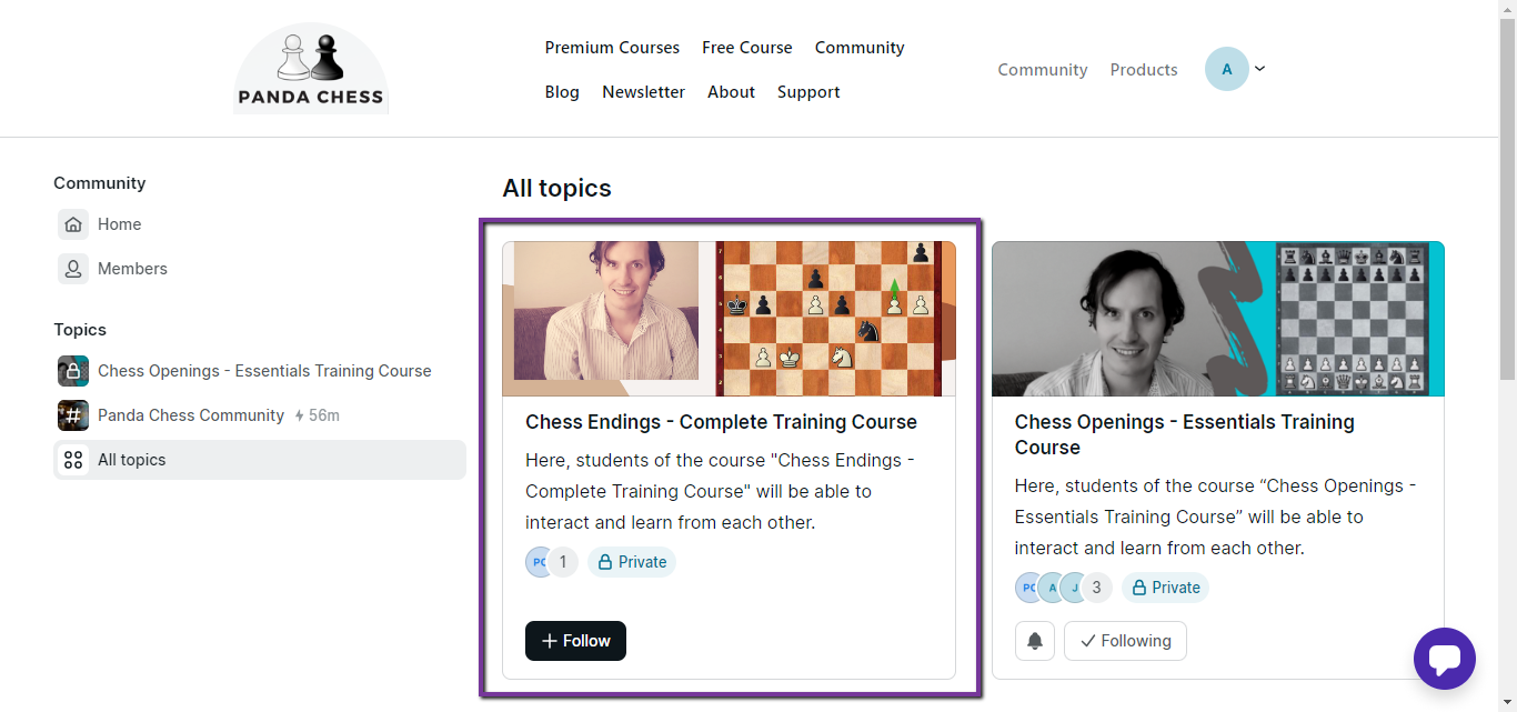 To confirm this, simply go to https://www.panda-chess.com/community/topics where you’ll see the private group.