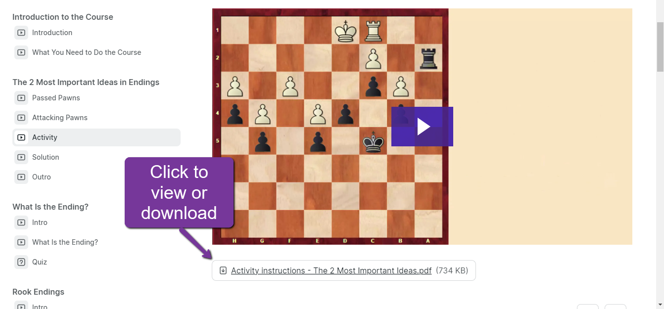 We'll take you step-by-step through engaging video tutorials and teach you everything you need to know to stop losing or ruining ending positions. This course includes practical activities in every section to make sure that you'll test your new knowledge and a final activity where you will evaluate endings using all the ideas that you learned in the course.